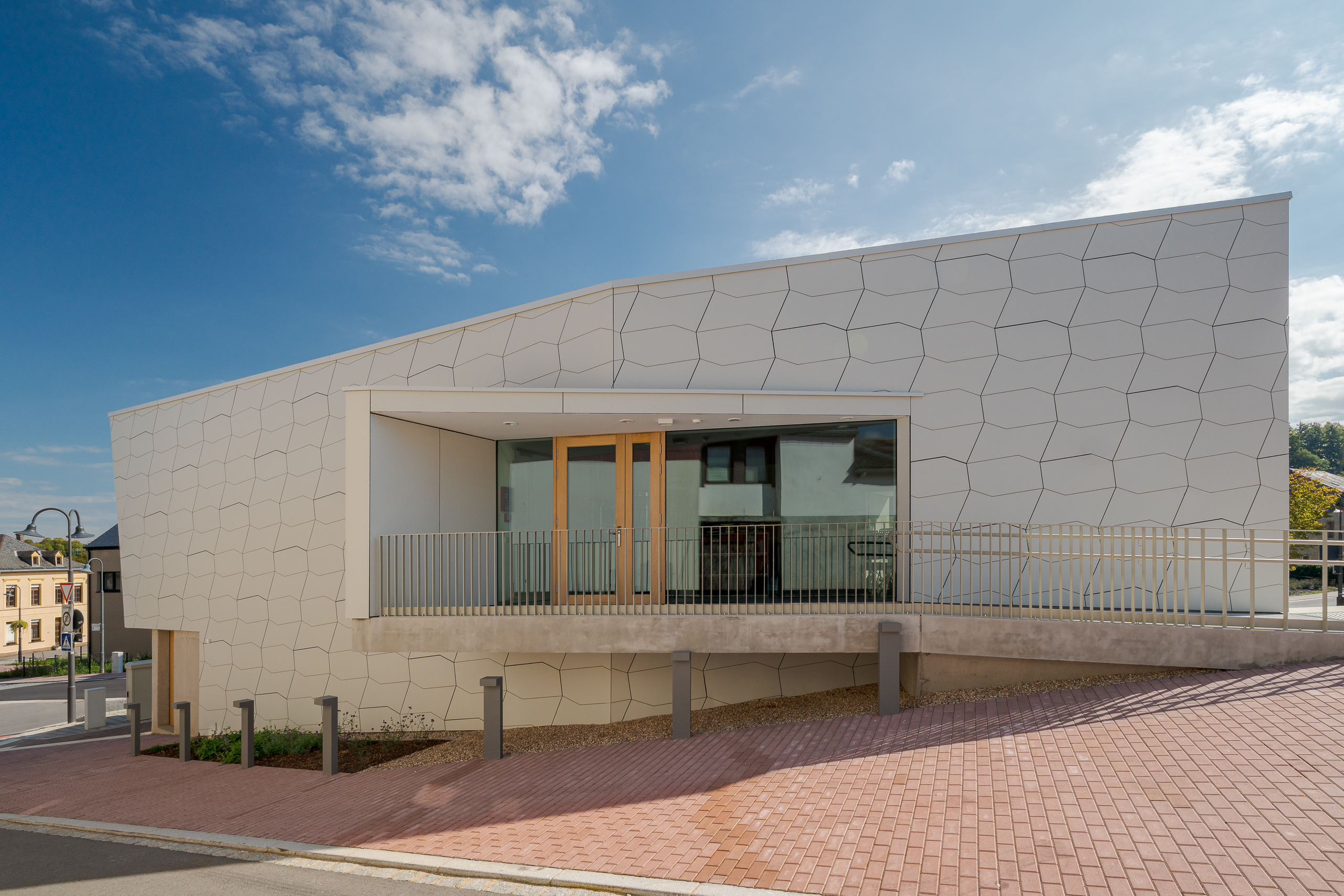 Beim Vereinssaal Greiveldange in Luxemburg durften wir als ETVIR GmbH die Lieferung der EQUITONE Fassadenplatten in der Oberfläche NU162 übernehmen – inklusive präziser